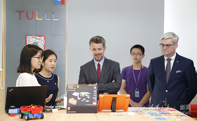 腓特烈王储参观终身学习实验室。记者 张宇 摄