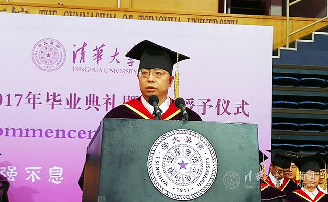 邱勇在2017年研究生毕业典礼暨学位授予仪式上讲话。 记者 苑 洁 摄