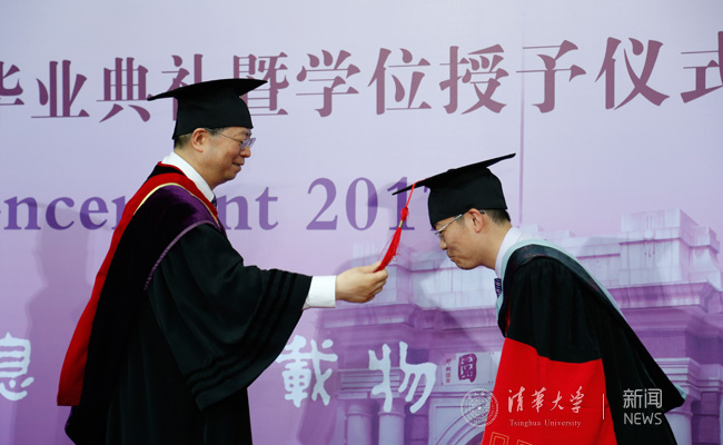 邱勇为毕业生拨穗。记者 张 宇 摄