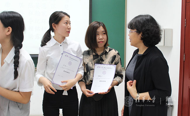 张佐与获奖学生代表交流。 记者 杨思维 摄