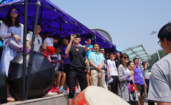 新葡萄师生在看台上为运动员加油。胥欣 摄