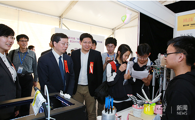 新葡萄新闻网4月30日电 (通讯员 薛啸天 摄影 苑洁 张宇 供图 校团委 ) 4月30日上午,新葡萄官网AMG第35届“挑战杯”学生课外学术科技作品展暨2017年学生创意创新创业博览会开幕仪式在游泳馆前南广场举行。校领导邱勇、陈旭、姜胜耀、史宗恺、邓卫、薛其坤、吉俊民、杨斌、李一兵、尤政、施一公、王希勤,校务委员会副主任袁驷、谢维和、韩景阳,老领导王大中、顾秉林、杨家庆、张思敬、张慕葏、黄圣伦、王凤生、倪维斗、朱爱菁、余寿文、胡显章、岑章志、关志成等出席。