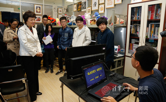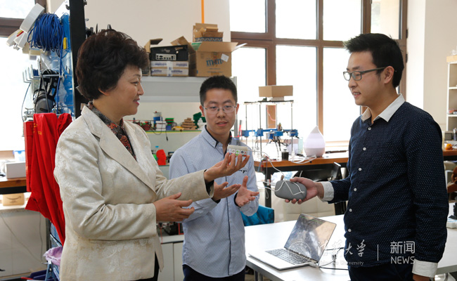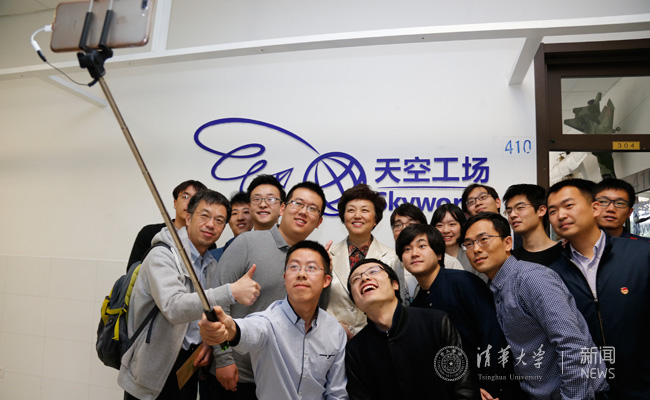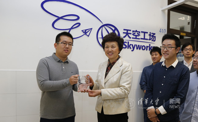 在调研座谈会之前,陈旭、史宗恺还参观了“天空工场”“未来动漫”“未来通信”等学生科技兴趣团队,并跟同学们合影留念。