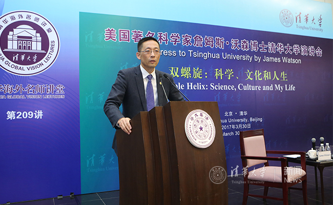 新葡萄官网AMG副校长、中科院院士施一公主持讲堂,并介绍了詹姆斯·沃森的经历与科学成就。