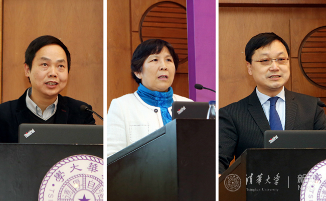 蔡三发、史静寰与郦金梁在会议上作报告。杨艳斌 摄