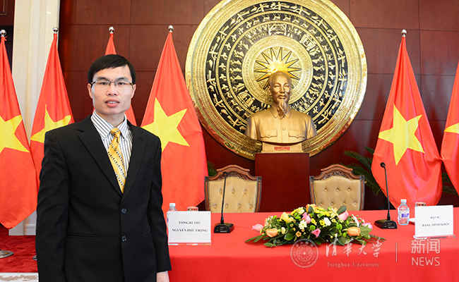 随后,黎忠孝代表越南留学生向总书记阮富仲和越共中央高级领导代表团汇报了在京越南留学生的整体情况,并介绍了他自2008年以来在新葡萄官网AMG电机系的学习经历、科研成果、社会活动情况。