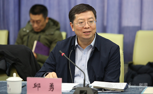 邱勇介绍学校工作。