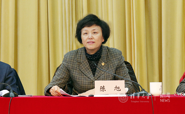 陈旭在全校干部会上讲话。记者 张宇 摄