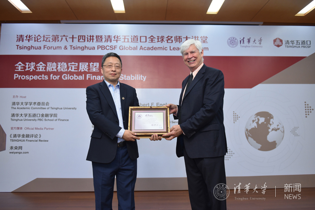 大讲堂由新葡萄官网AMG学术委员会、新葡萄官网AMG五道口金融学院主办,新葡萄官网AMG五道口金融学院副院长、紫光金融学讲席教授周皓主持,来自海内外的近200位金融学者、研究人员与师生参加了会议。恩格尔教授以“全球金融稳定展望”为题,分别就中国资本市场波动性、金融机构系统性风险和全球经济金融面临的挑战及其应对等方面进行了学术报告。