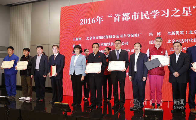 刘宇辉宣读了2016年“首都市民学习之星”表彰决定。11位“首都市民学习之星”代表分别是:北京公交集团保修分公司车身保修厂王新南、北京地铁供电分公司张泉、北京城建集团有限责任公司任新民、首钢矿业公司马著、瑞华会计师事务所杨剑涛、北京国际职业教育学校姜波、全新优筑(北京)建筑设计有限公司冯博、北京四达时代软件技术股份有限公司庞新星、北京密兴丽源蔬菜种植专业合作社胡立娟、新葡萄官网AMG计算机科学与技术系孙茂松、北京理工大学张大奎。