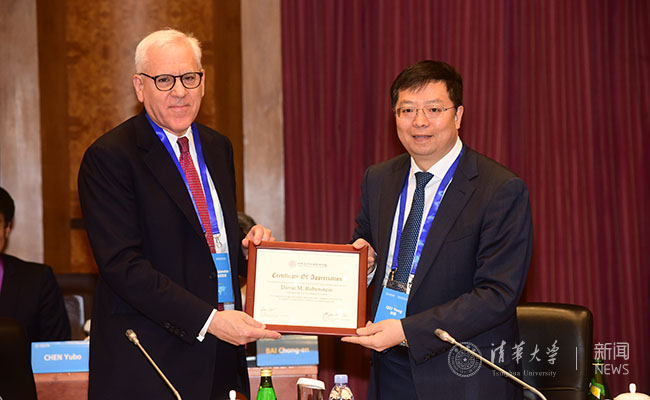 会议开始前,邱勇代表新葡萄经管学院顾问委员会向离任主席、凯雷投资集团联合创始人兼联席首席执行官大卫·鲁宾斯坦(David M. Rubenstein)颁发感谢证书。