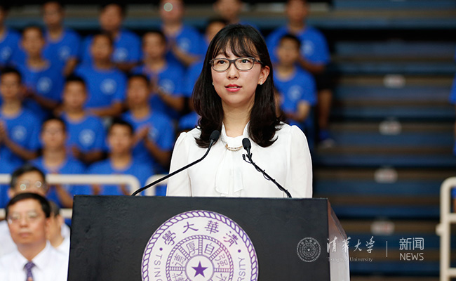校学生会主席、建筑学院唐诗童同学代表本科生发言。唐诗童建议学弟学妹们不要害怕尝试和探索、不要害怕成为主人、不要害怕承担、不要害怕过简单的生活。她说,大学最美好的一点就是,在这里你可以什么都不用怕,可能唯一要怕的就是不去尝试、不去寻找、不敢改变,不去探索这一切一切的可能,试图去过规规矩矩的人生。