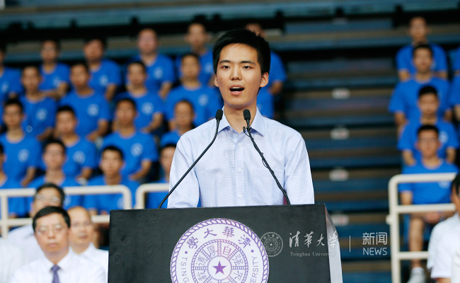 魏一凡代表新生发言。记者 张 宇 摄