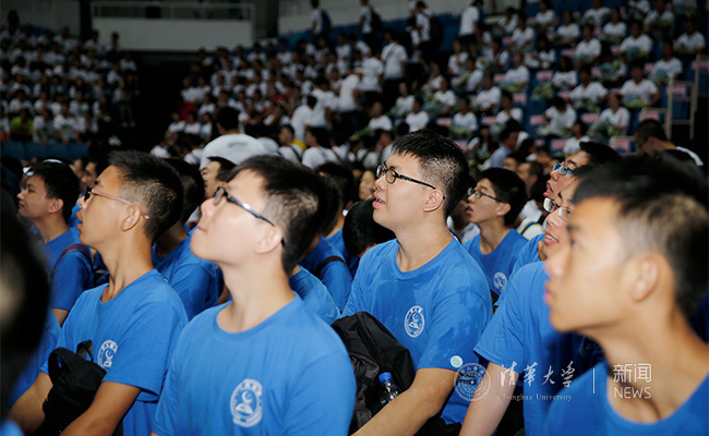 全体新生认真聆听“第一堂课”。记者 张 宇 摄