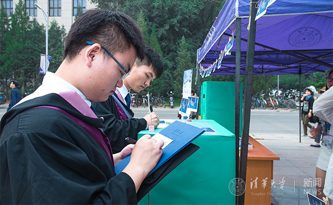 同学认真填写毕业纪念明信片。记者 张宇 摄