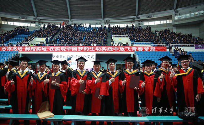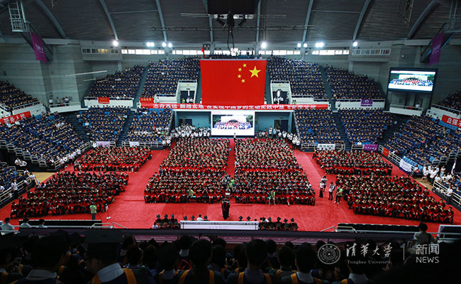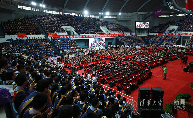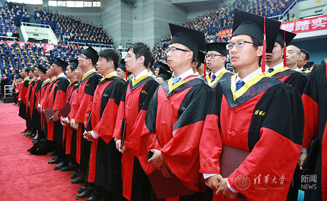 各院系领导和自己的毕业生坐在一起,在主持人介绍嘉宾环节,每当介绍到本院系时,教师起立致意,同学们集体欢呼。全场的欢呼声如大海波浪般此起彼伏,正是对老师们多年谆谆教诲感激之情的深情表达。当校领导和嘉宾随后出场时,全场欢呼声达到高潮,并报以热烈的掌声。