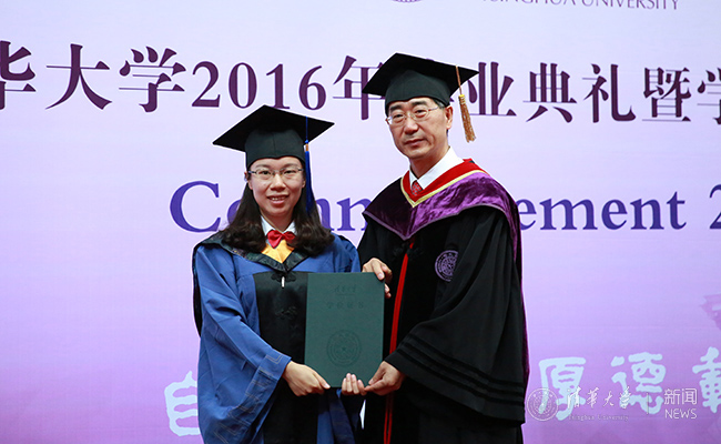 薛其坤向毕业生授予学位证书。记者 苑洁 摄
