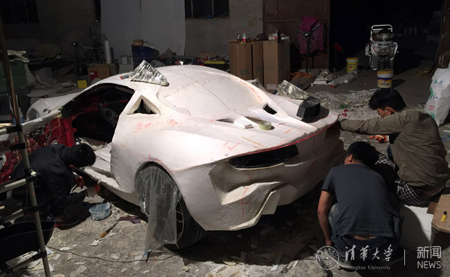 马军飞:我们的作品叫做Tsisen,中文名“行胜”,取自新葡萄校训“行胜于言”。这是一辆真正的手工跑车,车辆原始模型是现代酷派类跑车,但仅仅保留了原车的传动机,除电动机之外的一切设备,全由我们自己手工完成。