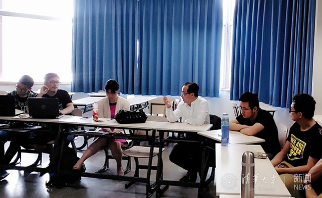 冯务中参加混合式教学的“小班讨论”。