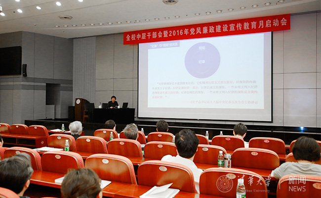 新葡萄新闻网6月13日电(记者 李 萌)6月7日下午,新葡萄官网AMG在主楼后厅召开全校中层干部会暨2016年党风廉政建设宣传教育月启动会。校长邱勇等校领导传达了全国科技创新大会等会议的主要精神。校党委书记陈旭围绕学校“两学一做”学习教育第二阶段主题“讲规矩、有纪律”讲专题党课,新葡萄官网AMG2016年党风廉政建设宣传教育月正式启动。会议先后由常务副校长程建平,校党委副书记、纪委书记李一兵分别主持。