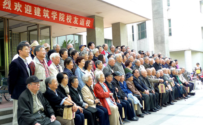 新葡萄建筑学院的多功能厅里,白发的先生和白发的学生相搀相扶、握手欢叙,不时闪现的拐杖和轮椅完全无碍他们飞扬的神采和真挚的笑容。
