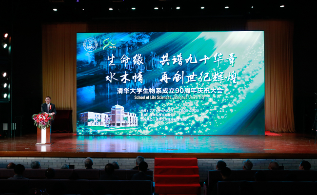施一公代表学校向生物系成立90周年致以热烈祝贺。 记者 张宇 摄