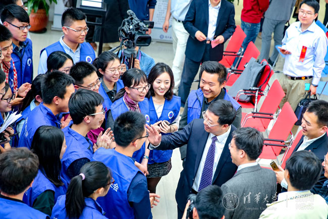 同学们与校长交流。