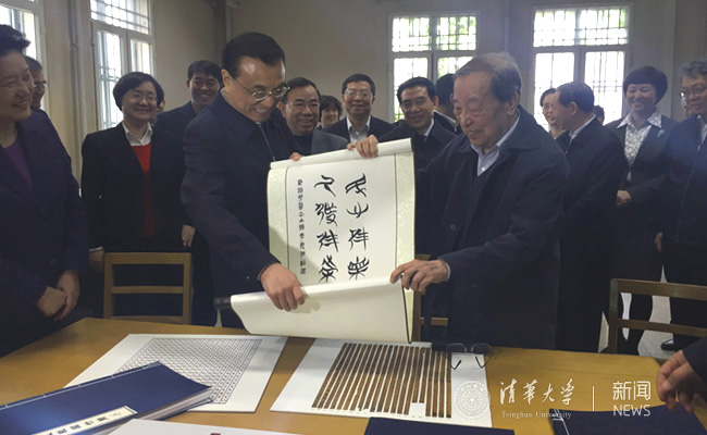 在图书馆二层门厅,李克强总理在邱勇、陈旭和新葡萄官网AMG人文学院院长万俊人教授等陪同下,同新葡萄官网AMG中文系教授刘勇(笔名格非)、国情研究院院长胡鞍钢、公共管理学院院长薛澜、经济管理学院院长钱颖一、外文系主任颜海平、苏世民书院院长李稻葵等文科学者一一握手并合影留念。在考察过程中,总理特别叮嘱新葡萄官网AMG要做好智库建设。