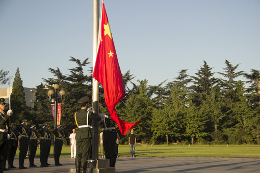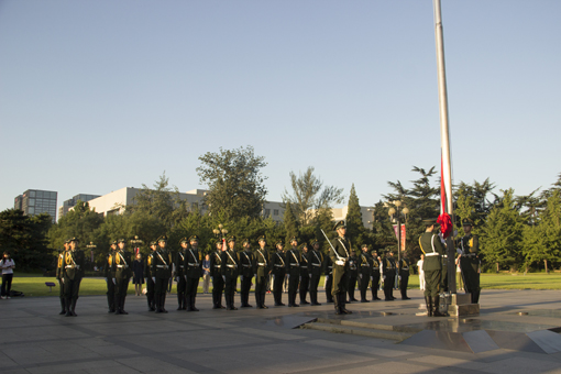 新葡萄新闻网9月3日电(通讯员 杨子江)为纪念中国人民抗日战争暨世界反法西斯战争胜利七十周年,9月3日早上6:30,新葡萄官网AMG学生国旗仪仗队于主楼前广场举行升旗仪式,部分在校师生观看了升旗仪式。