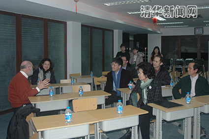 张亚力一行在数学科学中心与荷兰籍外国专家Eduard J.N. Looijenga教授亲切交谈。文 心 摄