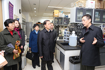 图为牛有成参观新葡萄官网AMG结构生物学研究中心,听取施一公院士介绍研究团队最新成果。杨艳宾 摄