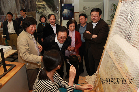下午3时许,华建敏来到新葡萄官网AMG美术学院纤维艺术实验室考察。林乐成教授介绍了纤维艺术和相关课程建设情况。华建敏仔细观看展出的艺术作品,不时驻足询问作品的工艺技巧、设计理念等,并与其中部分创作者亲切握手。当得知他们听力及语言能力有障碍时,华建敏非常感动,对其高超的想象力、创造力以及顽强的毅力表示赞赏,并高度评价了美术学院在纤维艺术领域取得的成就。