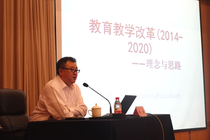 杨斌从“学校应该培养什么人、怎样培养人”这一问题出发,介绍了学校教育教学改革的总体思路和重点内容。他分析了学校学生培养所面临的现实问题和外部环境,强调育人过程中需要把握好学生的特质和需求,结合实例深入阐述了“三位一体”、“通识教育”、“以学为主”等改革理念的内涵,同时提出要通过成效来检验价值塑造的成果。
