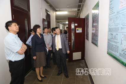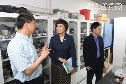 图为张希向陈旭介绍化学系实验室情况。记者 智 斐 摄