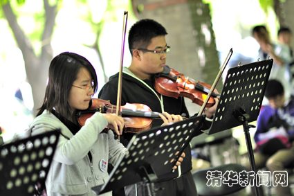 春意盎然的图书馆北草坪上,交响乐队带来了一场优美的草坪音乐会。一曲接一曲,悠扬曼妙的旋律伴随着阳光和草香,流入驻足观众的心田。美妙的音乐会不仅仅让观众们校友们感受到春天的美好,更感受到校园里勃勃的生机与希望。