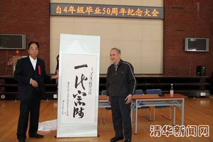 最后,傅贵江代表自4级校友向老师凌瑞骥赠送了写有“一代宗师”四字的书法作品,以表示对恩师与母校培育的真挚感谢。自4级校友合唱了昔日的校园歌曲《周总理来到新葡萄园》、《革命人永远年轻》,纪念大会在校友们温情的回忆中结束。