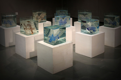 作品《没》,创作始于2012年,即大三第一学期的窑制玻璃(2)的课程,为该课程作业,也是本人第一次制作较大体量的玻璃作品。由于工艺较复杂,经验不足,在制作过程中出现过多次失误,后来在多位老师和学长的指导下,成功完成这件作品,并从中学到了很多。该作品灵感来源于自然摄影作品,有感于自然的壮美和神奇。用被湖水淹没的沙漠,表现自然的奇妙以及其带来的奇迹。自然的一切都在此起彼伏的循环着,沧海桑田,我们有时无法预知下一秒自然会带给我们的是什么。《没》是自然运行的规律,同时《没》也是空无一物的我们。我只想带着对自然的敬畏和喜爱,享受自然赋予我们的感知周围事物的能力。