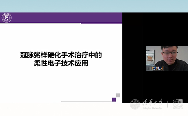 傅棋琪介绍了冠脉粥样硬化(俗称“冠心病”)手术治疗中的柔性电子技术应用。他提到,在未来,柔性电子技术传感器有望与蓝牙技术相结合,将病人的实时监测数据上传至云端,方便医生对病人的恢复情况进行远程观测,使病人在家也能享受到专业、精准、持续的术后服务。