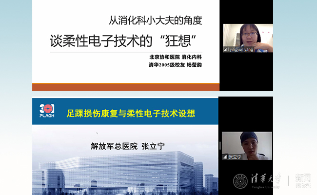 随后,中国医学科学院北京协和医院消化内科杨莹韵大夫和解放军总医院康复医学科张立宁大夫从各自丰富的临床经验出发,从医生视角对柔性电子技术的应用进行了畅想。杨莹韵从很多人习以为常的诊疗情境中发现了局限性,并提出了对于柔性电子技术应用的设想。张立宁则从足踝损伤康复问题出发,为大家科普了踝关节扭伤这一常见问题的发病机制、临床表现、康复治疗等信息,并对国内外柔性电子技术在康复医学方面的应用进行了介绍。