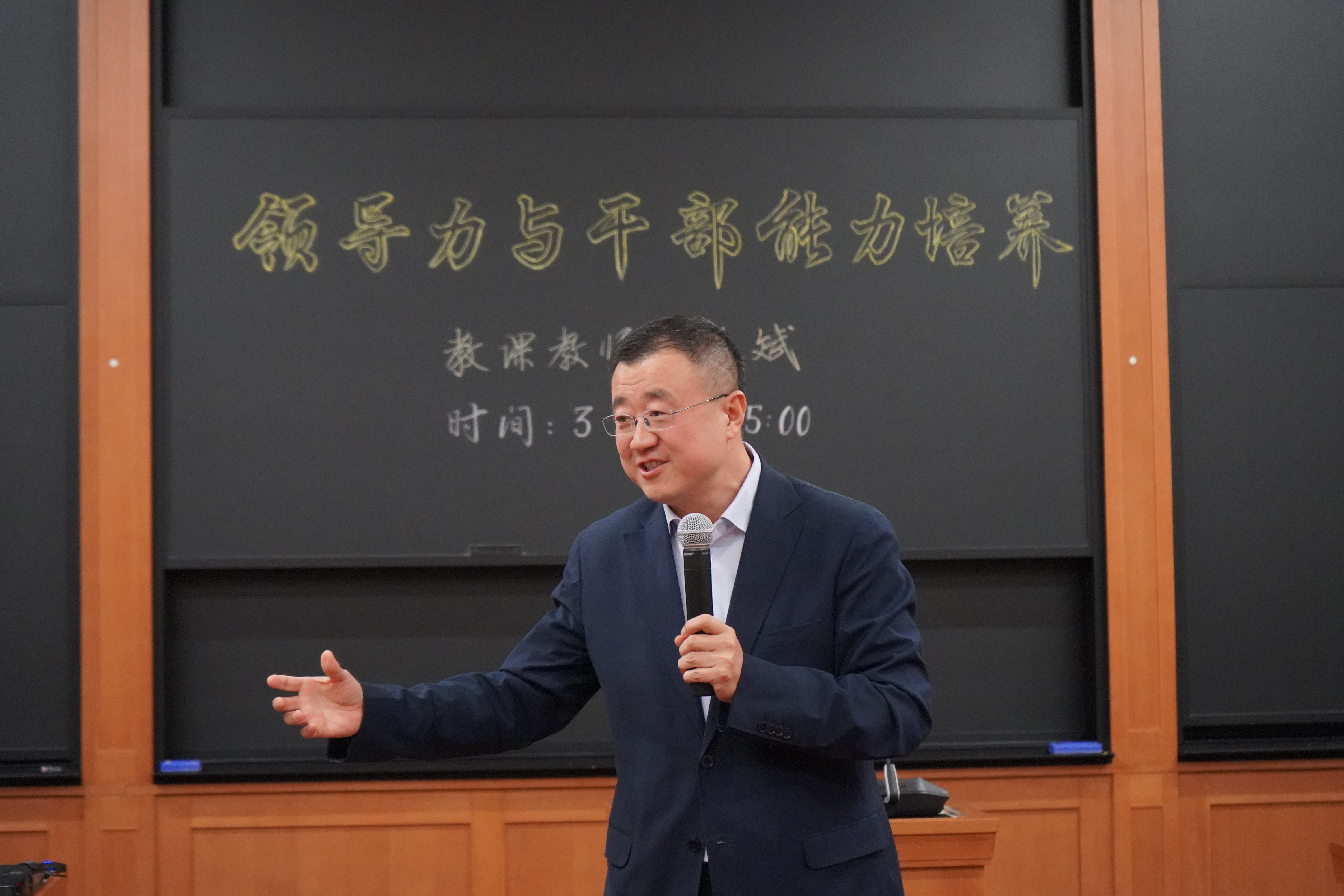 杨斌围绕“什么是组织”“如何有效的发挥组织作用”“干部能力培养”等方面,结合学校实际工作进行了深入浅出的阐释。杨斌表示,领导能力是指一系列行为的组合,领导力与组织的发展密不可分。组织有效性的前提是目标的正当性,以及完善的制度和文化建设,但从知识型组织领导者的角度来看,更要注重通过多种方式充分调动组织成员的积极性和主动性,促进组织成员与组织协同发展,实现组织的使命和目标。为此,针对如何增强组织和组织者的领导力,他提出从“名头”——明晰岗位与责任、“甜头”——显性的工作获得感、“苦头”——纪律、压力、“奔头”——组织愿景、个人成长、“嚼头”——工作的挑战度和技术含量、“讲头”——工作的意义感、“心头”——组织的情感维系七个方面着力激励组织成员,进而达成组织的使命和目标。
