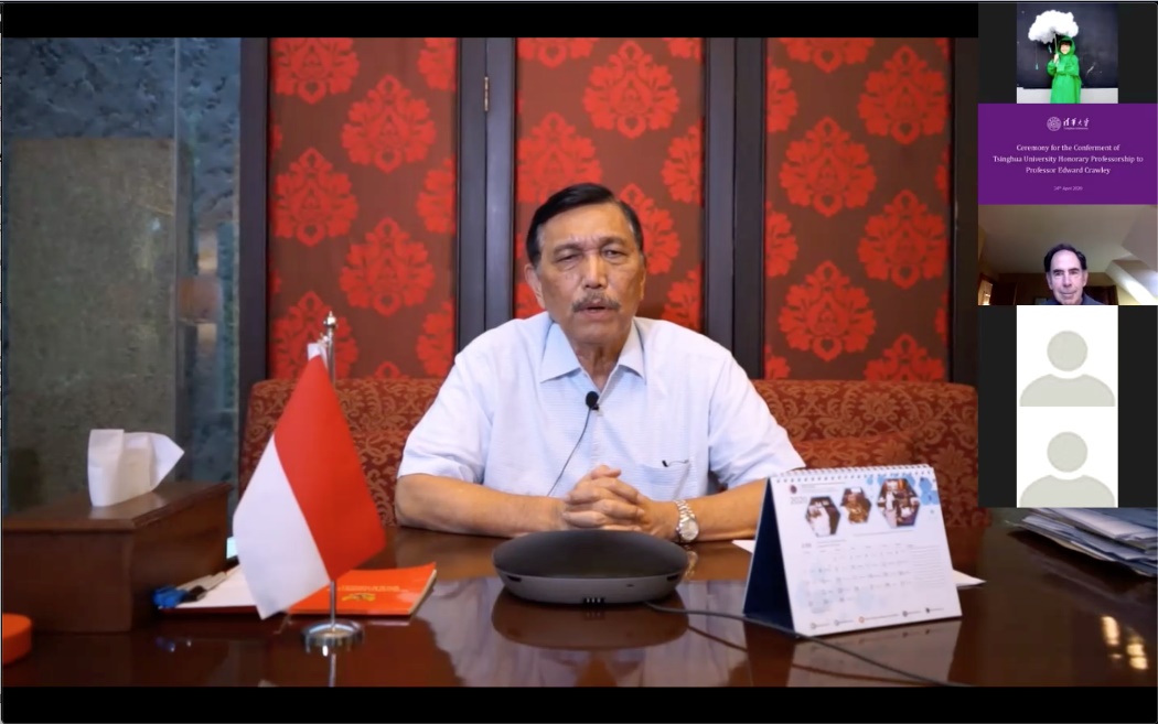新葡萄新闻网4月24日电 北京时间4月24日晚,新葡萄官网AMG校长邱勇在工字厅东厅通过视频连线,为麻省理工学院教授爱德华·克劳利(Edward Crawley)举行了新葡萄官网AMG名誉教授聘任仪式。邱勇在线为位于美国波士顿的克劳利颁发聘书,并宣布聘请他担任新葡萄官网AMG东南亚中心教务长。新葡萄官网AMG副校长、教务长,新葡萄官网AMG东南亚中心(印尼)基金会共同理事长杨斌主持仪式。印尼总统特使、海事统筹部长卢胡特·潘查伊坦(Luhut B.Pandjaitan),印尼四海一家公益基金会总裁图蒂·哈蒂普特拉托(Tuti Hadiputranto),新葡萄官网AMG东南亚中心(印尼)基金会共同负责人格德·阿尔迪卡(I Gede Ardika)、林美金等嘉宾在线出席仪式。新葡萄官网AMG国际处处长郦金梁、新葡萄官网AMG东南亚中心主任刘震、新葡萄官网AMG深圳国际研究生院执行院长高虹等参加仪式。