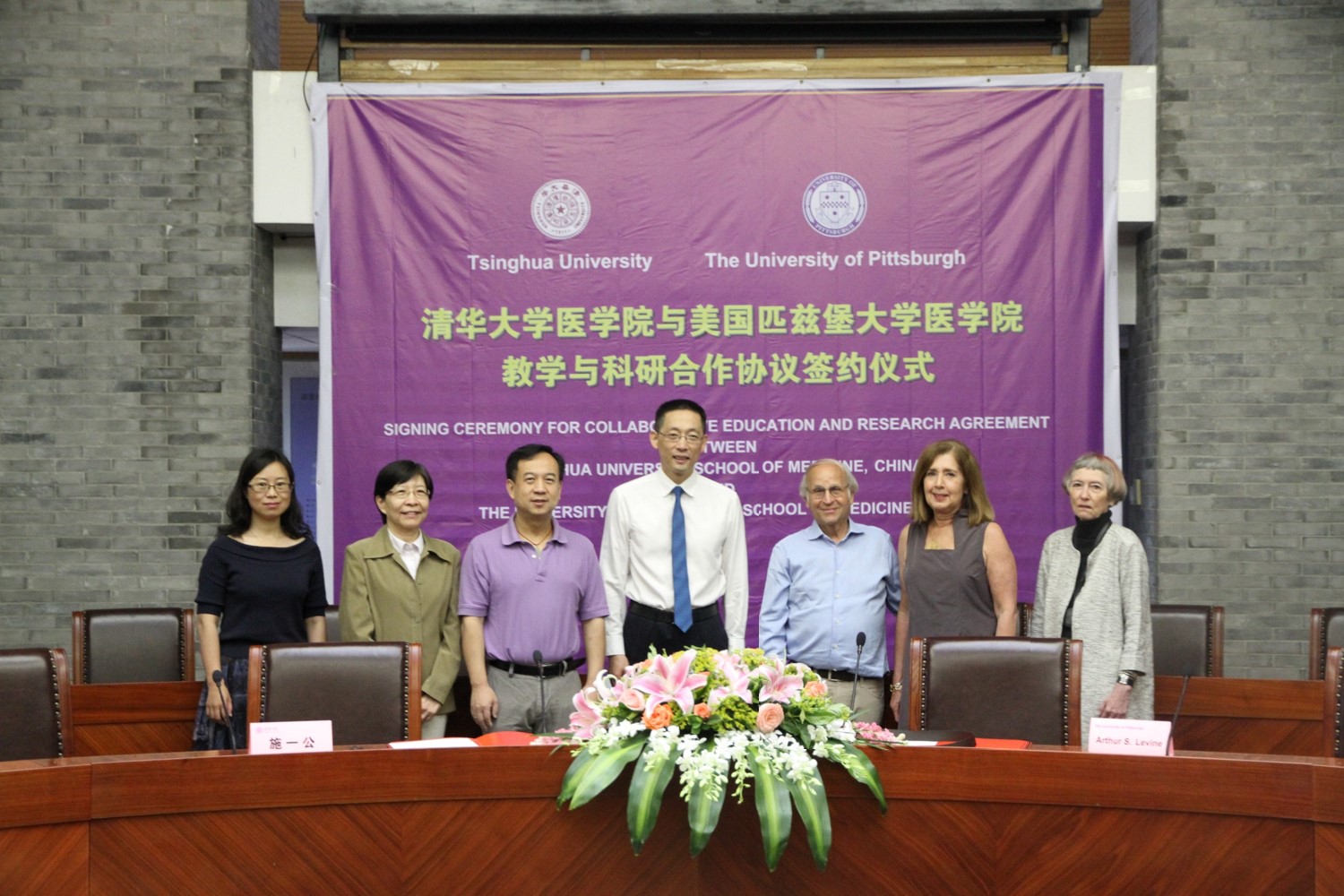 2016年续签两校医学院合作协议(左二:吴励教授;右三:阿瑟·莱文教授)