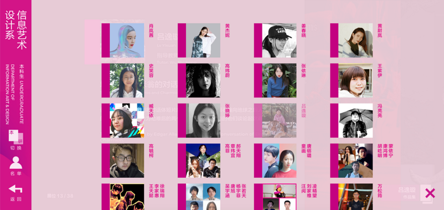 多元交互、多层次入口是本次线上展的一大特点。线上展厅里,每个闪烁的小圆点背后都有个“彩蛋”:可能是放大看绘画细节、可能是播放动画、可能是开启车门、可能是翻开书,甚至可能是让机器人变形……这些交互设计都会给观众带来意外惊喜。观众还可以返回目录页,选择最感兴趣的专业和品类。每个专业的本科生、研究生作品,一键就能切换。在线上展厅左边栏的学生名单中,能轻松地找到“他”和“她”。