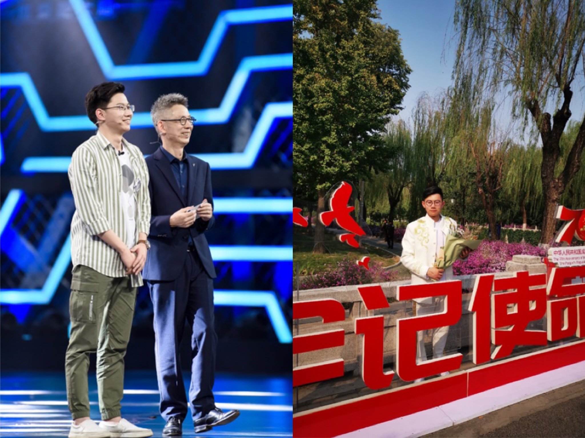 刘梦旸(左)参与最强大脑录制和新中国成立70周年群众游行