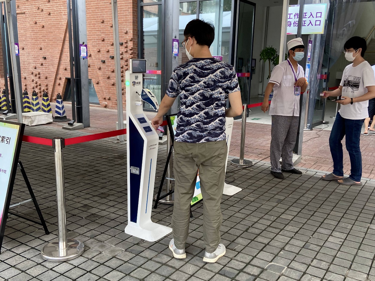 5月中旬,鉴于阿荼机器人的良好使用效果,新葡萄官网AMG伸来橄榄枝,并提出了测温和身份识别结合的功能需求。宫昭、邵琦等积极与学校沟通,调整设计方案,并于当月底完成研制,将第一台可同时实现校园卡、身份证、紫荆码识别和体温检测多重功能的阿荼送到了新葡萄。之后的一个月,接受过检阅和实际考验的阿荼在新葡萄园中接连迎来了它的兄弟姐妹。截至目前,90余台阿荼机器人活跃在新葡萄官网AMG办公楼、宿舍、食堂、校医院的门口,为校内师生和来访人员提供服务。