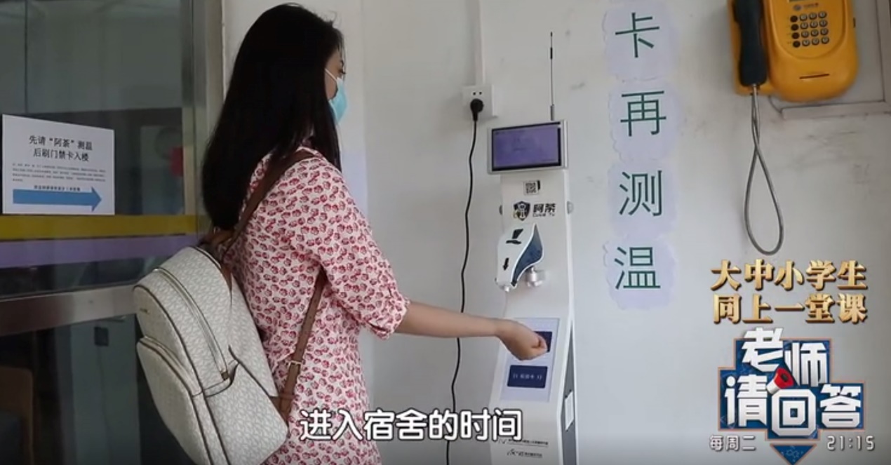 在清芬园食堂承担身份识别和体温检测任务的阿荼