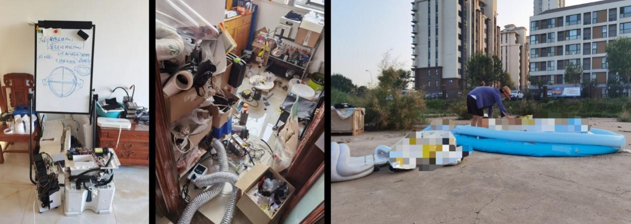 作为一名机械系博士生,中断实验实践,也就等于知行合一的培养方案被截流。在这场疫情的早期,林腾宇预感到这样的常态化停学状态后,首先简易布局了未来几个月的科研安排和时间节点。他在与导师沟通后,确定了疫情期间的研发方向,并多方面论证了在家组建实验基地进行太阳能海水淡化净水设备研制的可行性。接下来,便开始了从零到一的建设和推进工作。他用了一个月左右的时间,在户内搭建了能够制备宏量材料的实验环境,还在户外发展了露天工程测试场地。由于课题方向决定材料制备、小样测试和户外实测是必须的科研闭环步骤,因此结合实际情况,因地制宜,基本重构了一个简易版的材料实验室和户外中试场景。