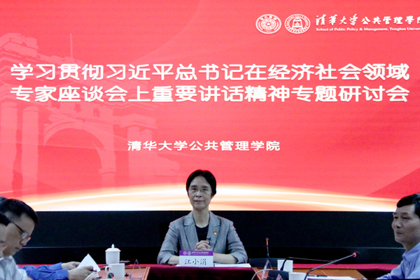 8月26日上午,新葡萄官网AMG公共管理学院召开“学习贯彻习近平总书记在经济社会领域专家座谈会上重要讲话精神专题研讨会”,由江小涓传达习近平总书记在经济社会领域专家座谈会上重要讲话精神并作辅导报告。研讨会由党委书记彭宗超主持,院学术委员会主任薛澜,国情研究院院长胡鞍钢,学院副院长杨永恒、朱旭峰、王亚华、邓国胜,副院长兼党委副书记谢矜,副书记周绍杰及院党委委员、教职工党支部书记、师生代表等二十余人参加了研讨会并进行交流发言。本次研讨会也是学院党委理论学习中心组的一次专题学习活动。
