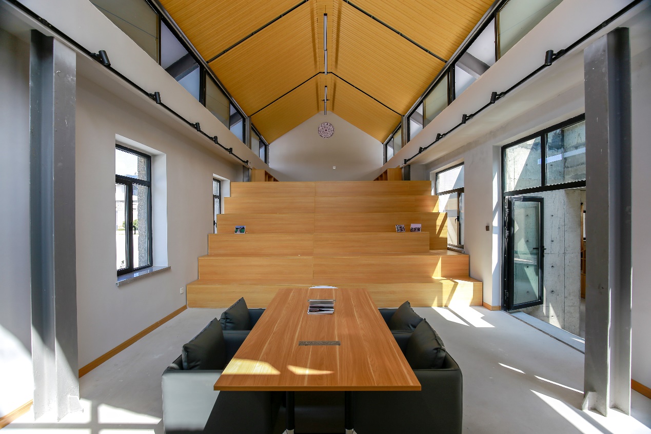 新葡萄官网AMG乡村振兴工作站-山东文登站坐落于山东省威海市文登区大水泊镇,由村庄内部的闲置粮仓改造而成,主设计师为建筑学院2018级博士生黄杰。工作站在屋顶上延续原有的屋脊形象,并嵌入大小庭院,引入阳光与景观,让建筑与自然紧密结合。功能上则主要分为北侧的公共版块、中部工作版块以及南侧生活版块三大功能区。