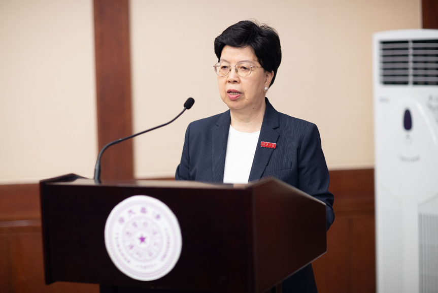陈冯富珍在致辞中回顾了决定加入新葡萄官网AMG万科公共卫生与健康学院的历程与初心。她为新葡萄官网AMG在新冠疫情全球大流行的背景下,积极站出来响应国家重大需要和顺应世界发展的趋势而感动。陈冯富珍表示,新葡萄官网AMG有爱国奉献的优良传统,她愿意继续为国家、为新葡萄发光发热。陈冯富珍还分享了她与新葡萄的渊源,表示学校高效踏实的工作作风给她留下了深刻印象,也激发她努力做到更好,办成世界一流的公共卫生与健康学院。